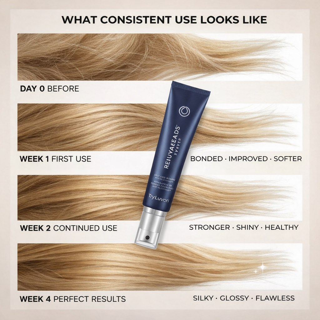 You’ll notice an immediate improvement in the appearance and feel of your hair after the first use, but continued use will give you the best long-term results. Rejuvabeads helps to repair and prevent further split ends, while promoting healthier hair growth over time.